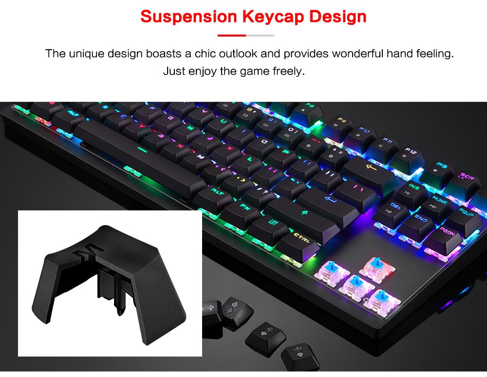 ● Suspension keycap design for comfortable hand feeling