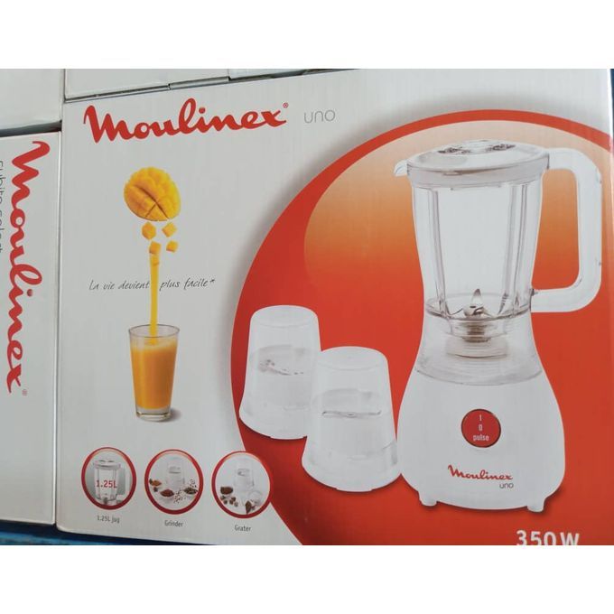 Moulinex Multipurpose Blender/Grinder Uno makes Blending easy!Compact and easy to use blender with a mini grinder and a mini grater 1.25L TOTAL CAPACITY Perfect to prepare juices and more for the whole family at once STAINLESS STEEL BLADES Stainless steel sharpened blades for a durable performance over time