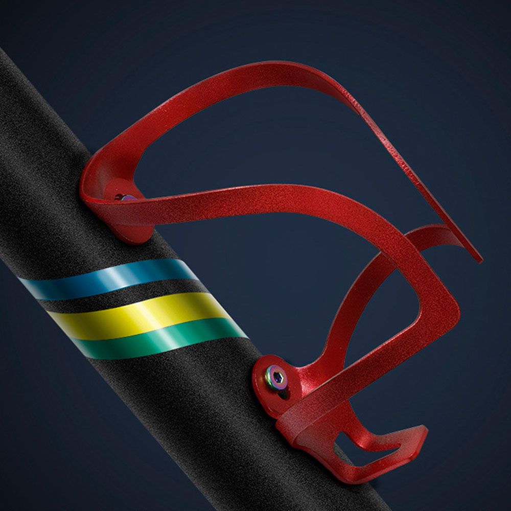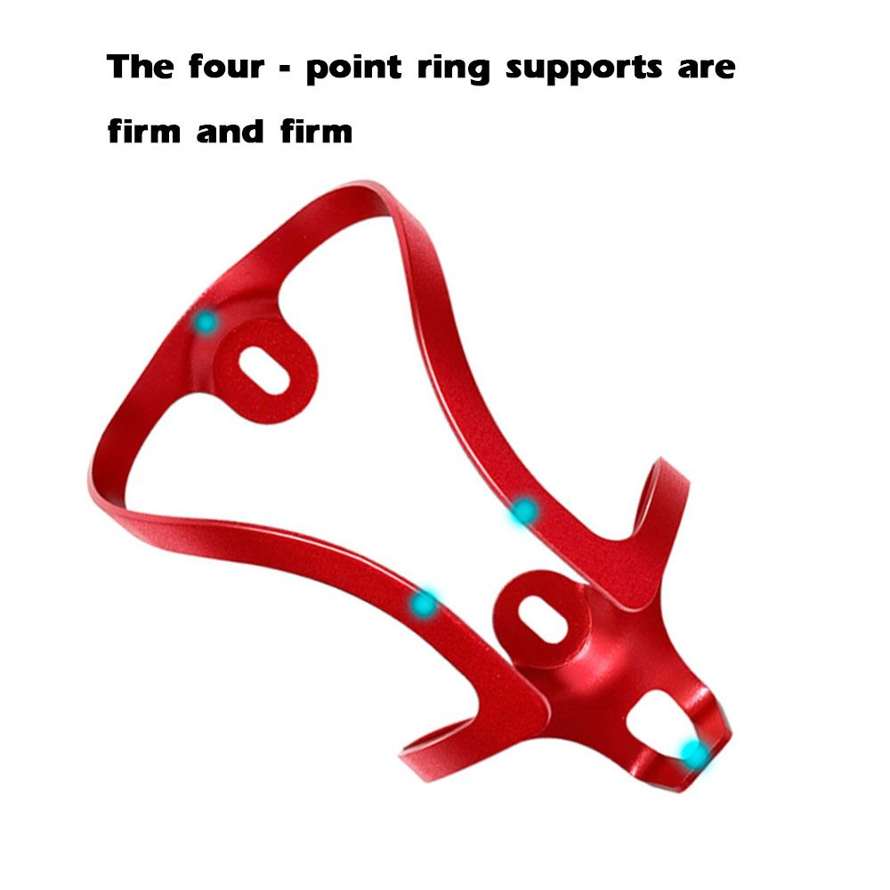 This bicycle water bottle rack is made of aluminum alloy. It is lightweight, nice durability and easy to install. It is suitable for various capacity water bottles.