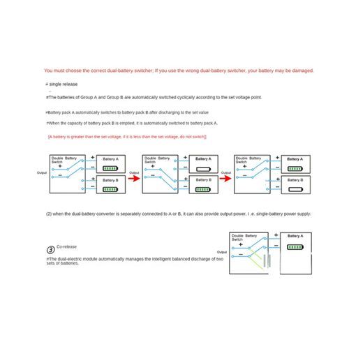 1. Dual battery packs switch parallel batteries to increase capacity Dual battery connectors