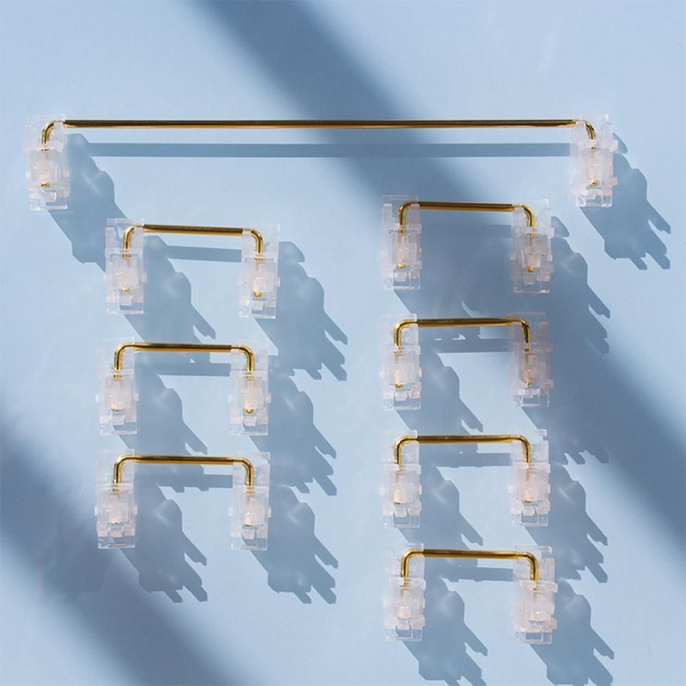 The 87 key keyboard uses 1x6.25u and 4x2U. Colour:Golden+transparent