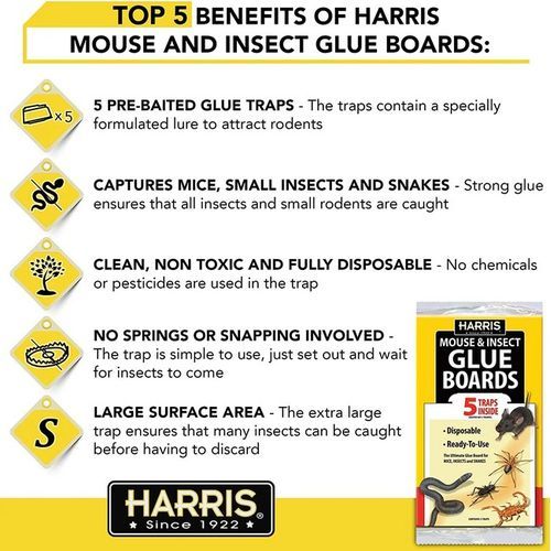 - 5 pack, mouse & Insect glue pre-baited traps, non-toxic, disposable, ready to use, ultimate glue board for mice, insects & Snakes