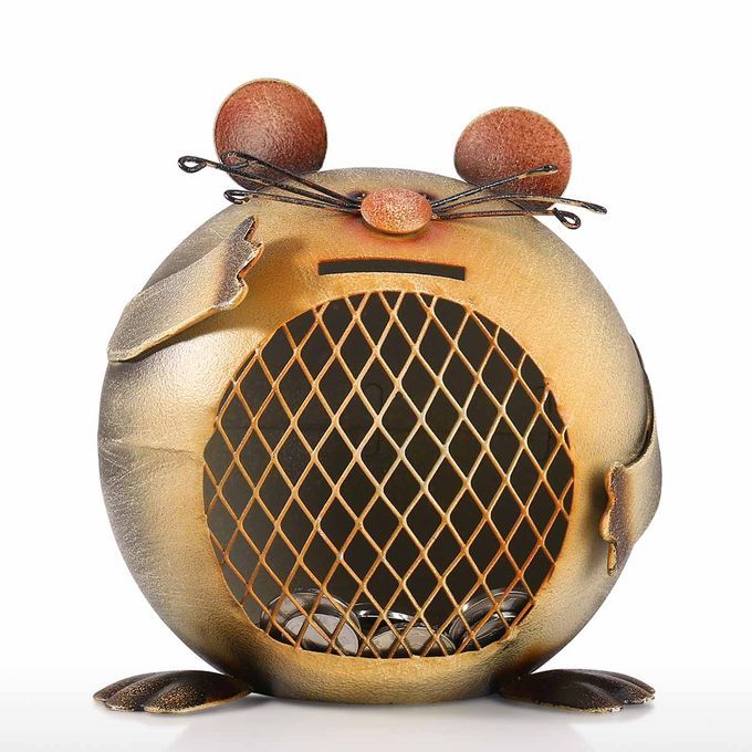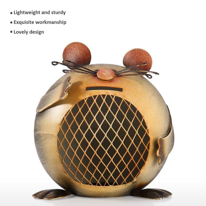 The adorable saving is made of iron. It is lightweight and sturdy, and the kids can play with it. This mouse money has mini eyes, which seems very cute. This lovely mouse figure was made by exquisite workmanship and special style, and the surface has a sand effect. The mouse's mouth is regarded as the coin slot. It helps you to save more money. The mouse looks at you with “feed me” expression, which greatly helps your baby to develop a habit of saving money.