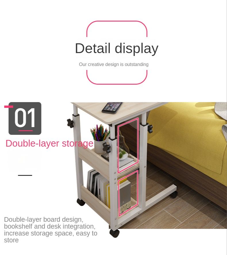 Welcome to our storeLift And Lift Movable Bedside Tables Household Notebook Computer Tables Bedroom Lazy Tables Bed Desks Simple Small Tables feature:1. Double-layer board design, bookshelf desk - integrated, increase storage space, easy to store2. The spacious table top allows you to use it without restraint, it is a good choice as a bedside table or side table3.The lockable pulley will not shake at will, the force point is even, and it is suitable for movement and static4. C-type structure has good stability, strong and durable, and theapplicable environment does not occupy a lot of space, think what you want5,Round table corners feel smooth, reduce collision pain, and take care of your daily life6. Height can be adjusted at will to suit different needsTop sales, products you can't miss. Once you place an order, we ship immediatelyComputer Table Lazy Bedside Table Table Table Simple Desk Can Be Moved Up and Downcharacteristic:Material: wood-based panelType of man-made board: density board/fiberboard Style: Simple and modernColor Classification: 60 Black Willow [Side Style] 60 White Maple [Side Style] 60 White Maple [Side Style] [Upgrade Shelf] 60 Black Willow [Side Style] [Upgrade Shelf] 60 Ancient Oak [Hot Sale] 60 White Maple [Hot Sale] 60 Warm White [Hot Sale] 80 Ancient Oak [Hot Sale Desktop Widening] 80 White Maple [Hot Sale Desktop Widening] 60 White Maple [With Cabinet] 60 Yellow Pear [With Cabinet] 50 * 30 Warm White [Basic]60 White MapleCustomizable: NoAssembly or not: Yes, packaging Volume: 17Including components: other bookshelves, computer tables, partition boards, assembly boardsPre sale available: Yes