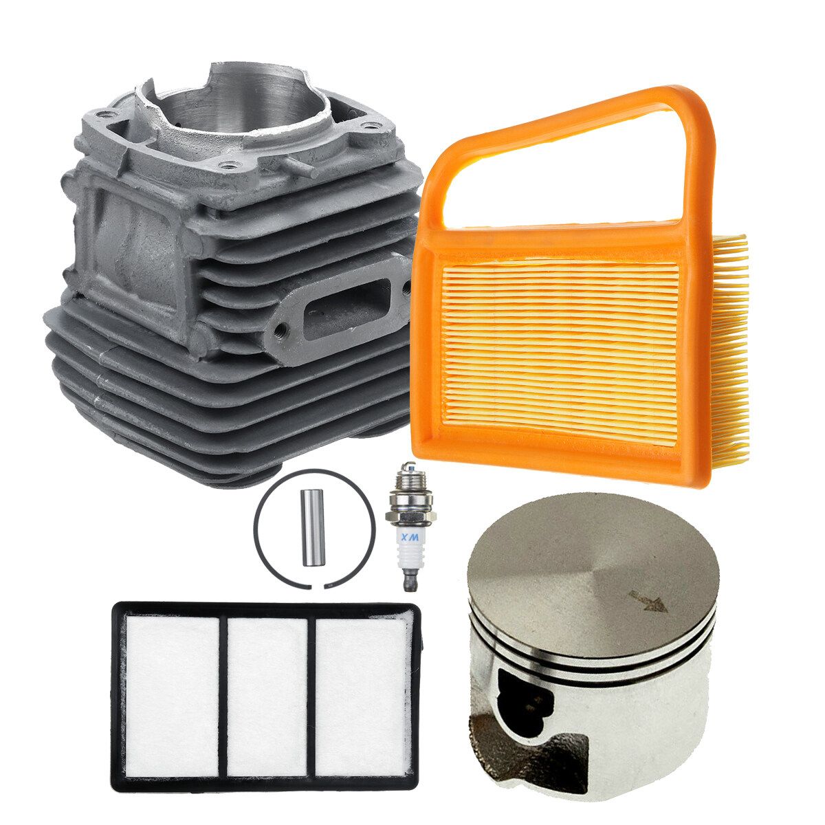 Additional information - Kit contains: cylinder, , rings clips, pin, set of air filters spark plug.