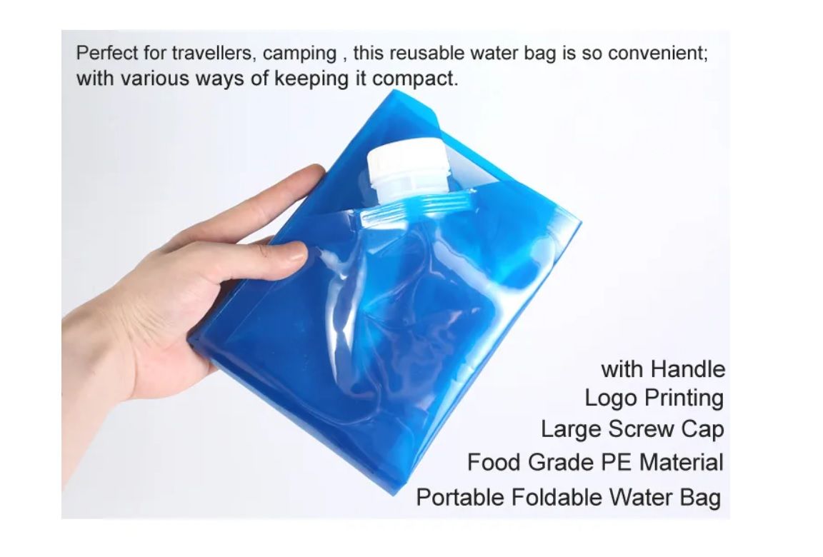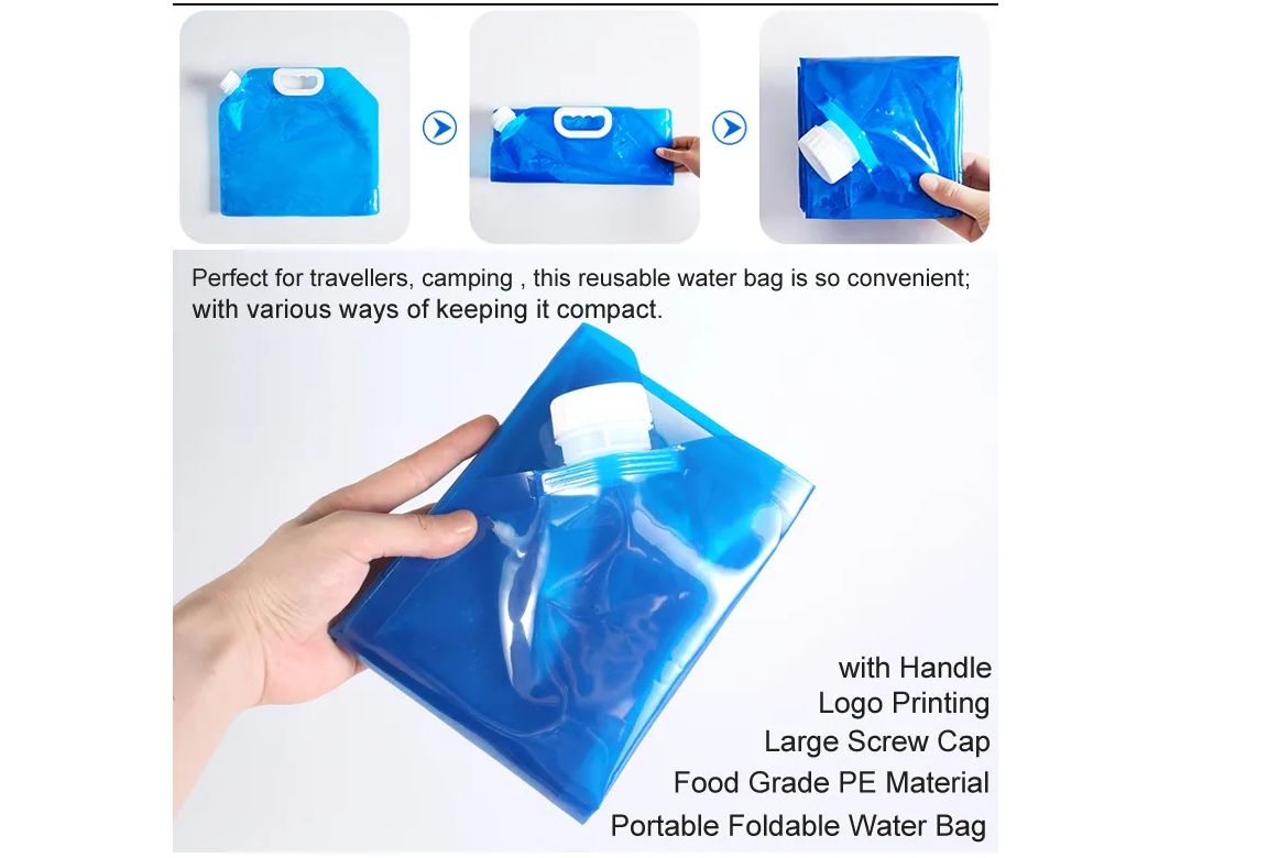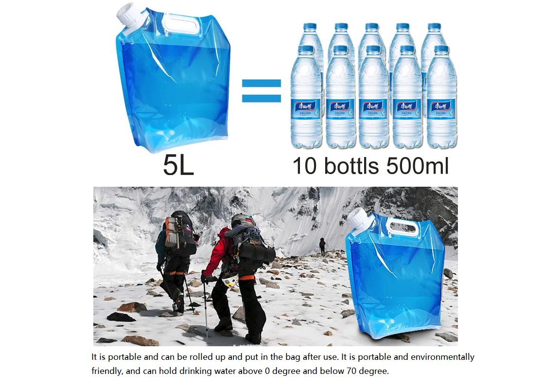 Foldable: The water bag is designed to stand when full of water and can be rolled, folded or flattened when empty, making it easy to use and carry wherever you go.