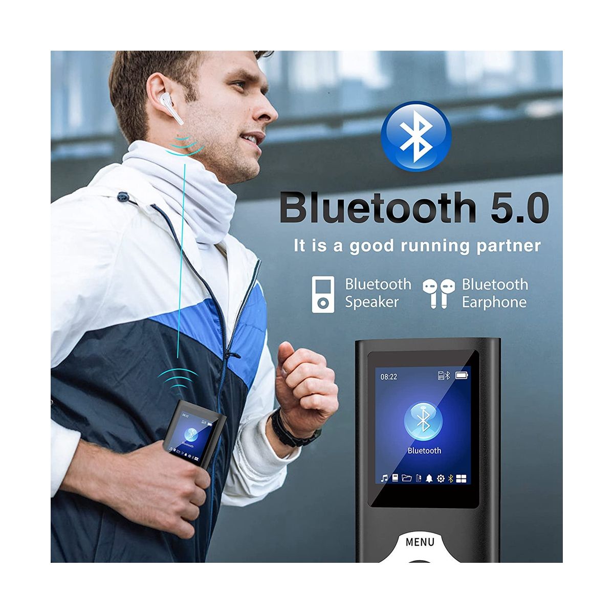 Bluetooth 5.0 means faster transmission speed, stable performance, strong anti-interference , more stable transmission, and stable signal. You can pair your Bluetooth MP3 player with wireless Bluetooth headphones and Bluetooth speakers. You can also connect the Bluetooth speaker in your car to listen to your favorite music while you are driving, so you are no lonely driving alone. Perfect for drivers/long trips to enjoy music freely.
