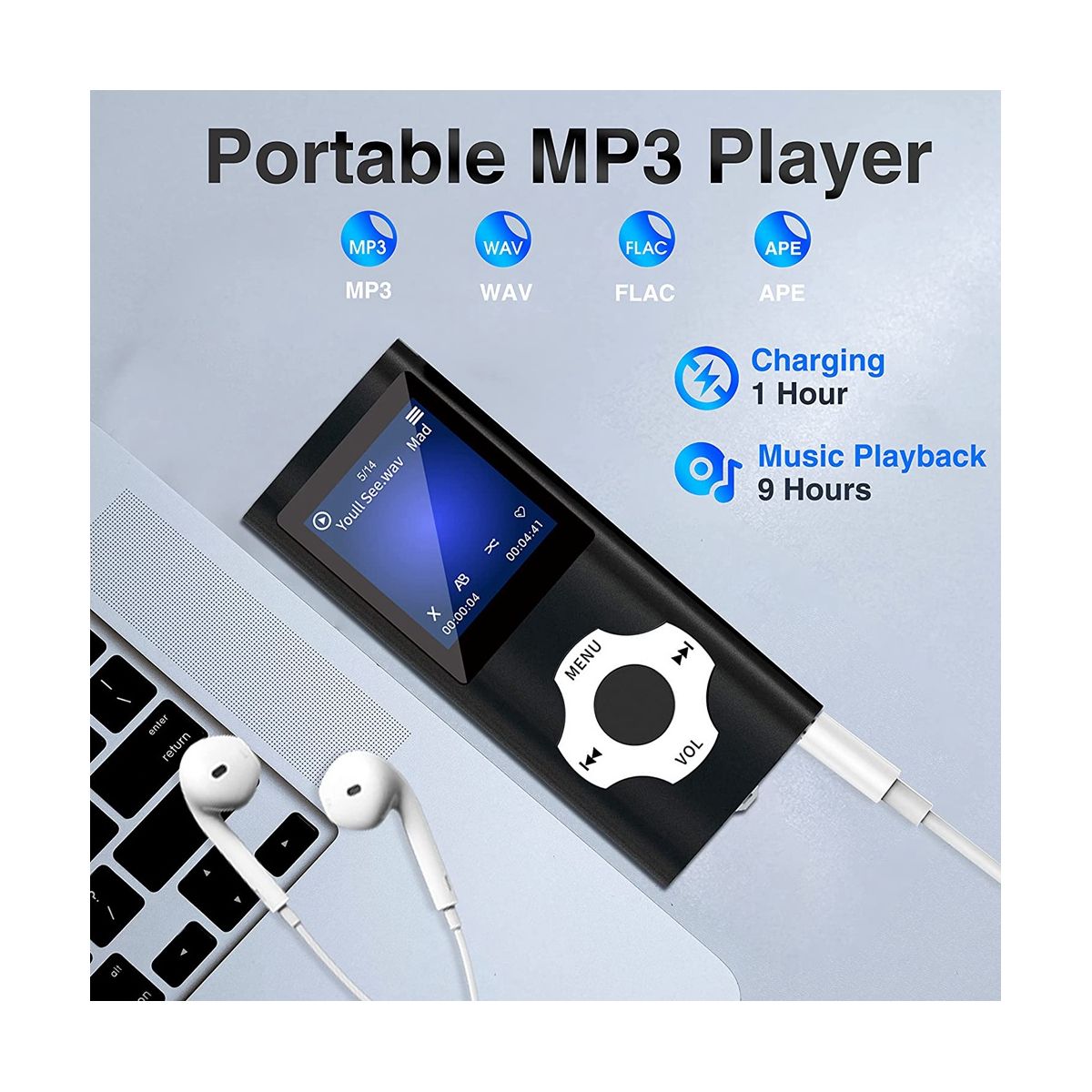 This MP3 player includes a 32GB TF card, which can 6000 . (Support up to 64GB TF). This mp3 player uses a professional intelligent noise reduction chip and technology to reduce noise and high-quality sound. You can download your favorite to import into MP3 and put on the included headphones to immerse yourself in a of music. Support a of audio formats, including MP3/WMA/FLAC/OGG, etc.