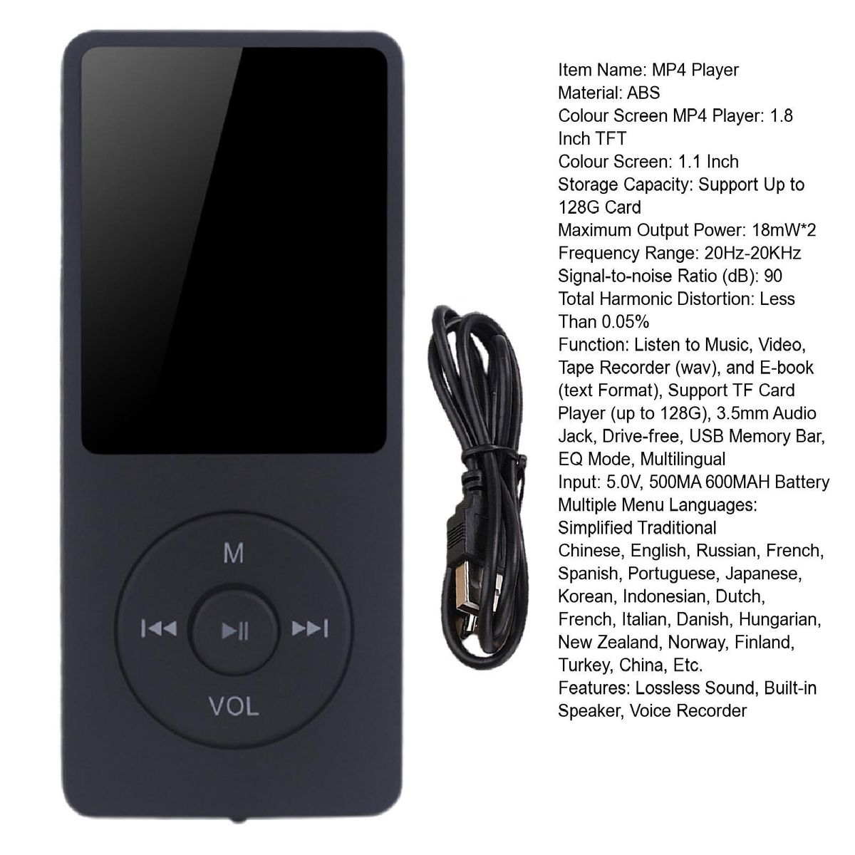 Function: Listen to Music, Video, Tape Recorder (wav), and E-book (text Format), Support TF Card Player (up to 128G), 3.5mm Audio Jack, Drive-free, USB Memory Bar, EQ Mode, Multilingual
