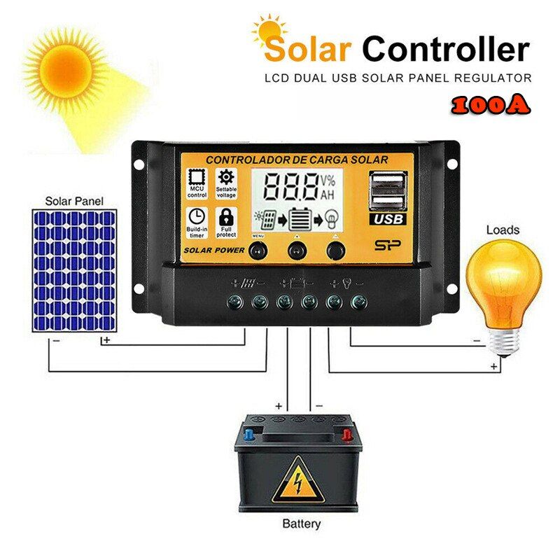 1X MPPT Solar Charge Controller 12V 24V 20/30/40/50/60/80/100A Solar Controller Solar Panel Battery Regulator USB LCD Display
