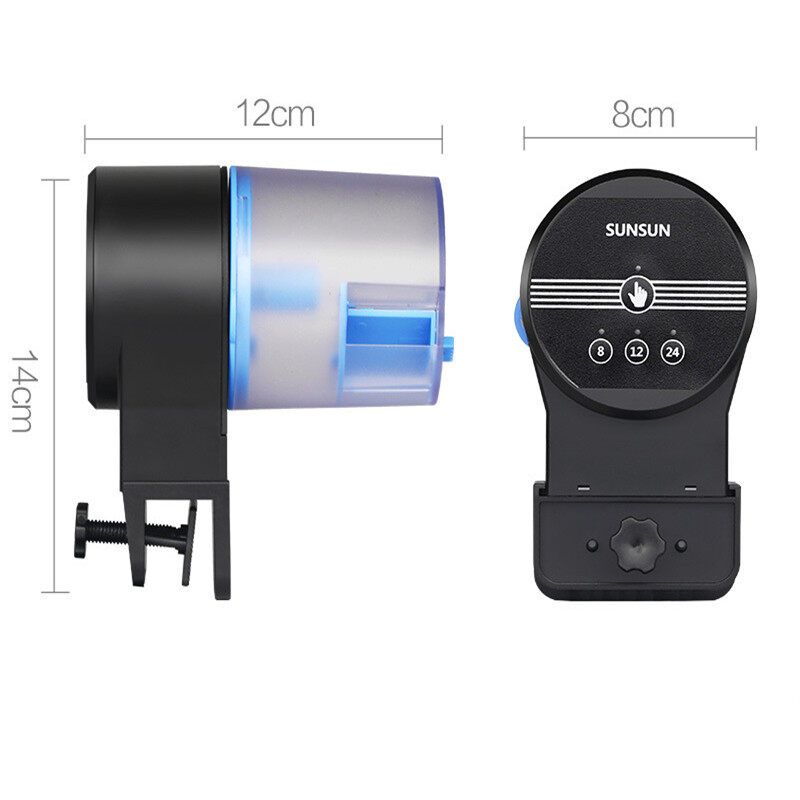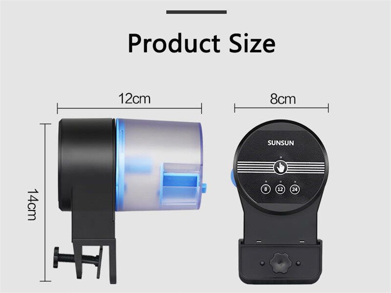 Features:Easy installation. The dispenser can be mounted in two ways according to the shape of your aquarium.Adjustable switch is convenient for you to adjust the food outlet according to the fish needs, you may increase or decrease the amount of food dispensed per rotation.