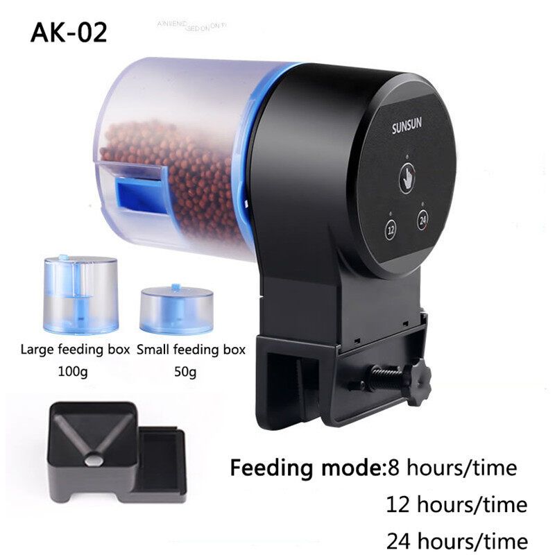 Specification:Condition: 100% Brand NewMaterial: PlasticColor: BlackVoltage: AK-01s:1.5V 2 * AA (Not included)Product Size: Approx. 12cm * 8cm * 14cmPackage Weight: Approx. 1000gPackage Included: 1 * Automatic Fish Feeder
