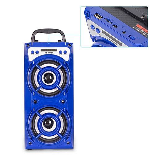 This is a multi-functional mobile speaker, which will provide you high quality sound effect. The speaker supports BT wireless connection, U-disk music play, 3.5mm audio wired connection and TF card MP3 music play, which allows you enjoy music in multiple ways. Also it supports FM radio function, which provides you much convenience to know all kinds of the newest news. With LED light and built-in high capacity lithium battery for long-term playing. Portable handle design, very easy to carry.