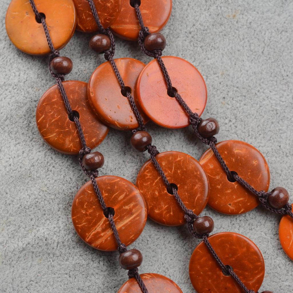 Fashion Bead Pendant Necklace;Woman Ethnic Jewelry Handmade Necklace;Bohemian Woman Long Necklace;Fashion woven beaded necklace;Ethnic Coconut shell wooden bead necklace