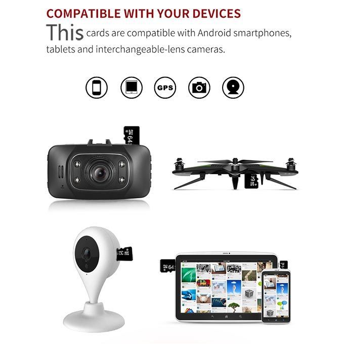 Features:Compliance with SD Card Association SpecificationUs ed with adapter, it can be us ed as SDHCISDXC flash card.MICROSDHC and MIROSDXC equipment,Compatible with mobile phones, plug-in headphones, plug-in speakers, driving recorders, cameras and other equipmentReliable and stable, according to the safety performance is good