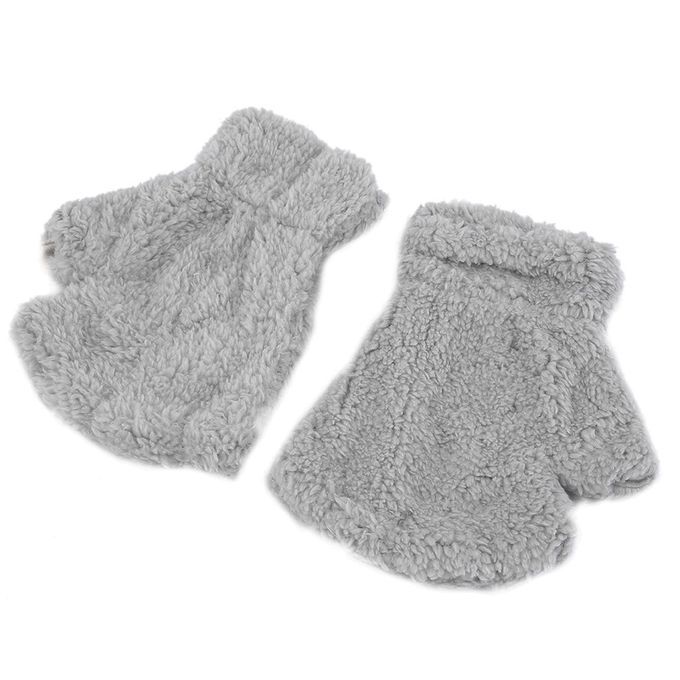 MT Sofe Women Winter Claw Gloves Fluffy Bear Paw Mittens Lady Half Finger Gloves-grey