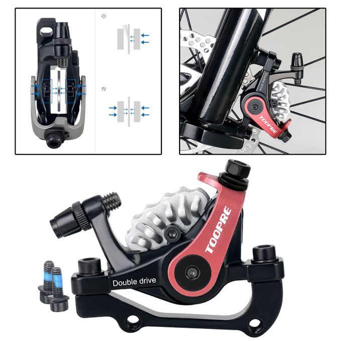 Mechanical Dual Disc Brake Caliper made of premium aluminum alloy material, compact, lightweight, durable and long lasting.