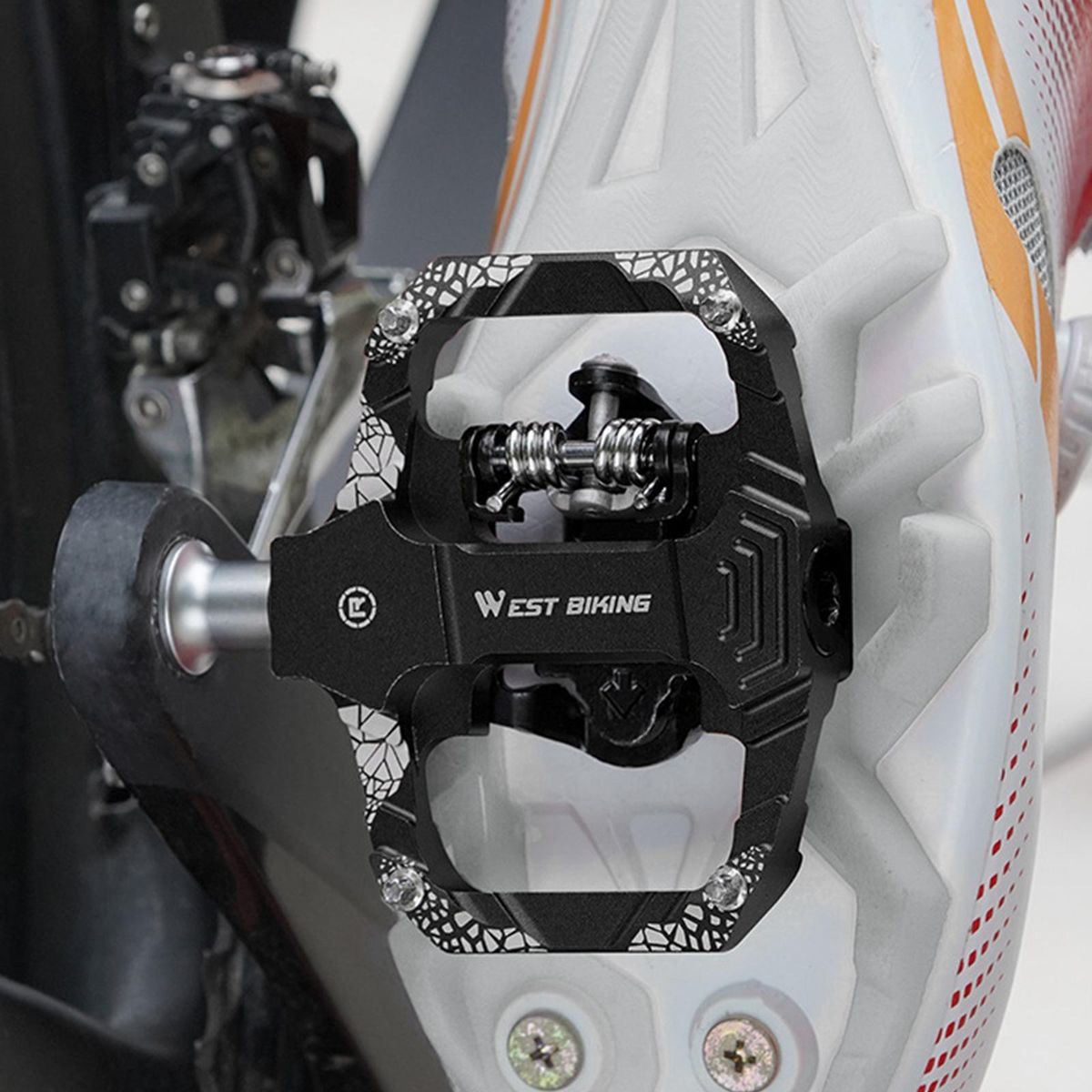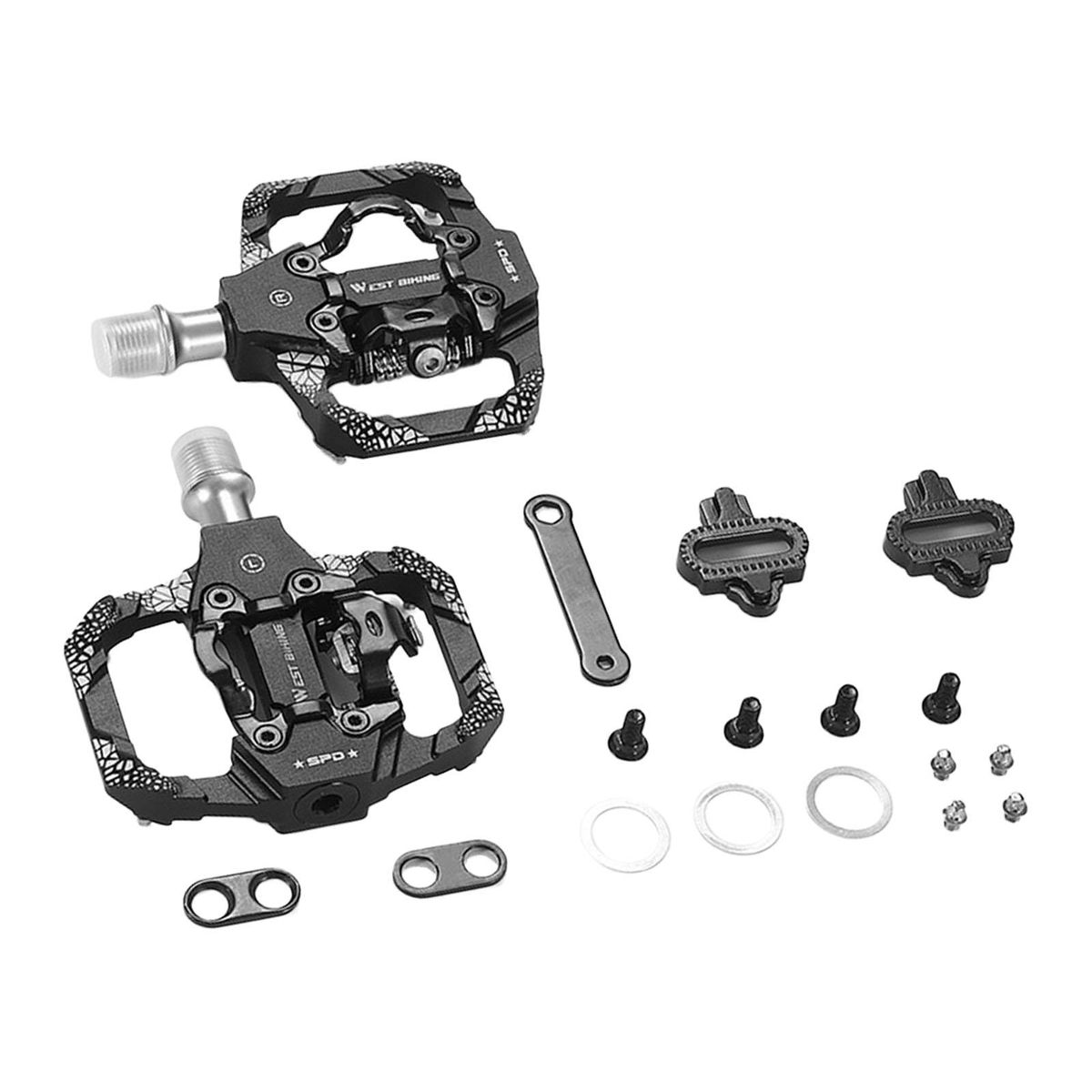 Dual Platform Pedals: Double sided bicycle pedal, one side is a traditional platform for use with regular shoes, and the other is suitable for SPD cycling shoes. With stainless steel cleats, has strong gripping force.