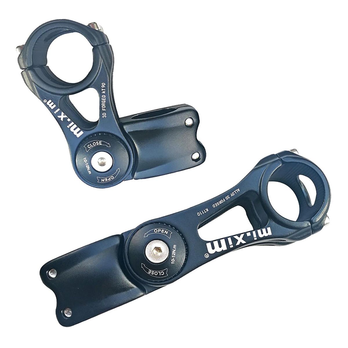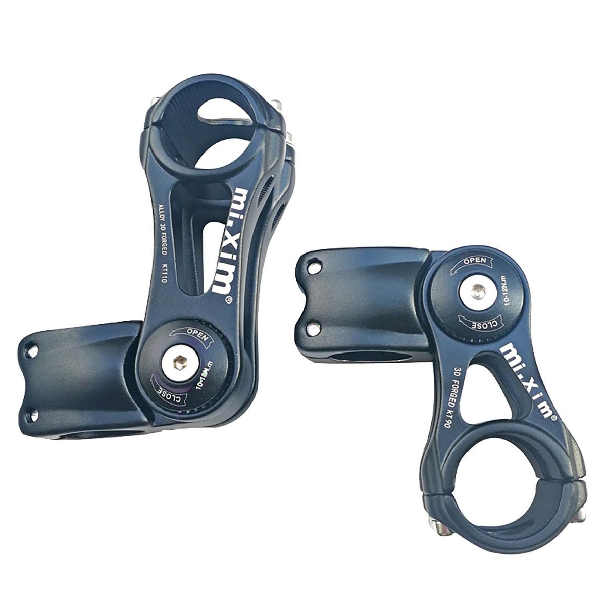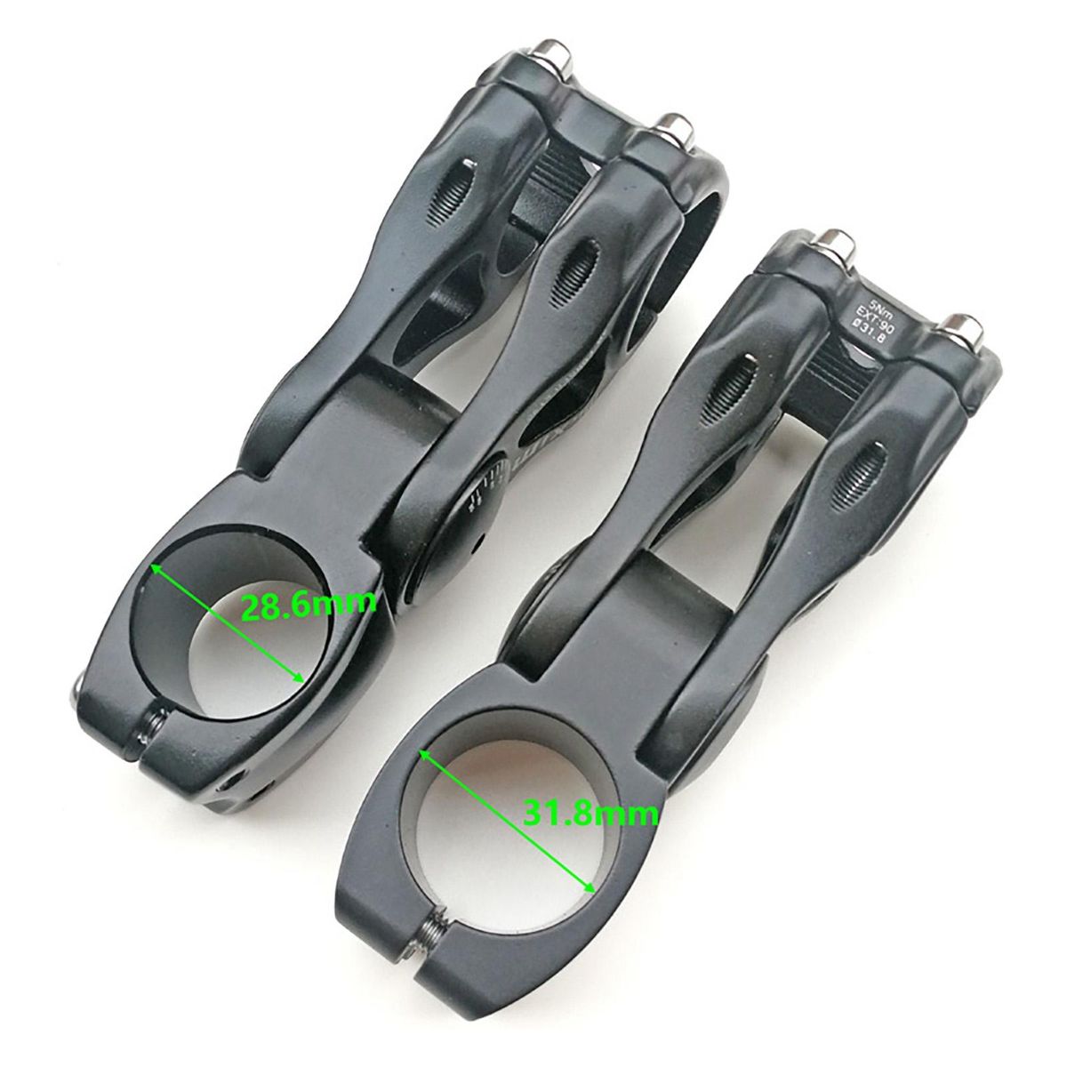 Material: Aluminum AlloyColor: BlackFor Handlebar diameter: 31.8mmFor front fork stem diameter: 28.6mmAngle: +/- 85 degreeSize(Length):90mm/3.54inch110mm/4.33inch
