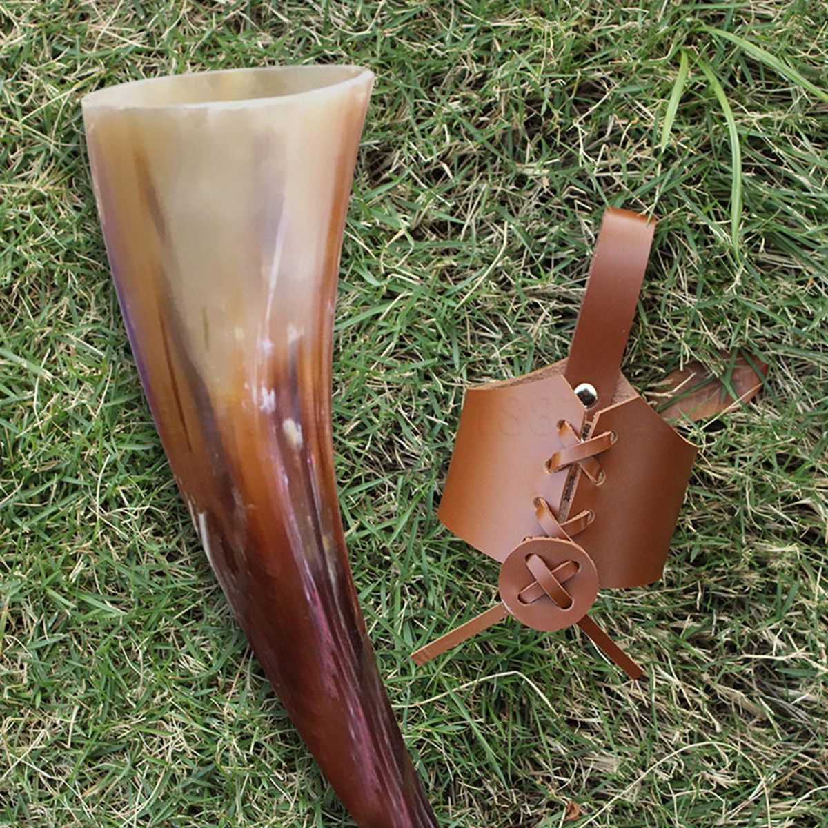 High-quality: Premium brown leather waist holder and it is perfect for your ox cup. It has been shaped as a perfect of a medieval leather case.