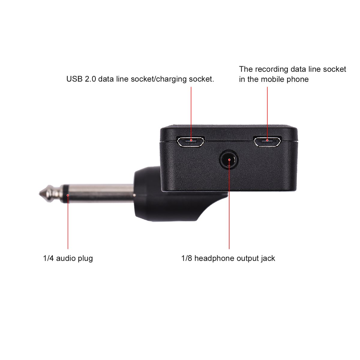 Practice Amp - Nice for beginner to practice electric guitar without creating much noise. The amp allows you to produce sound through headphone or wireless Headphone. Equipped with standard USB2.0 port, 1/8-inch(3.5mm) headphone output jack, and 1/4-inch audio plug.