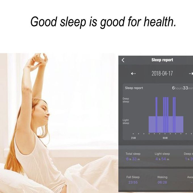 2.Sleep monitoring: Real-time re ording of your sleep duration and qu ty, giving a reasonable sleep index to help improve sleep qu ty.