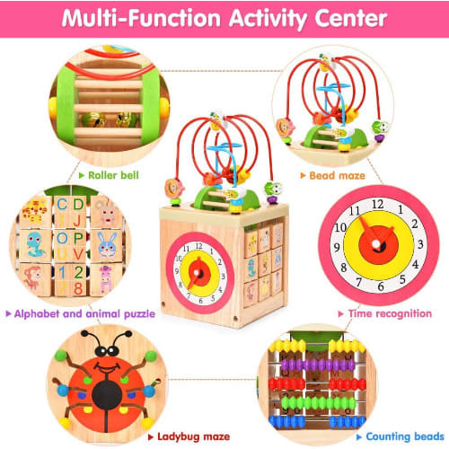 This activity table grows with your child, with 3 heights and rolling animal pals to keep your tot busy from the time they begin to walk.