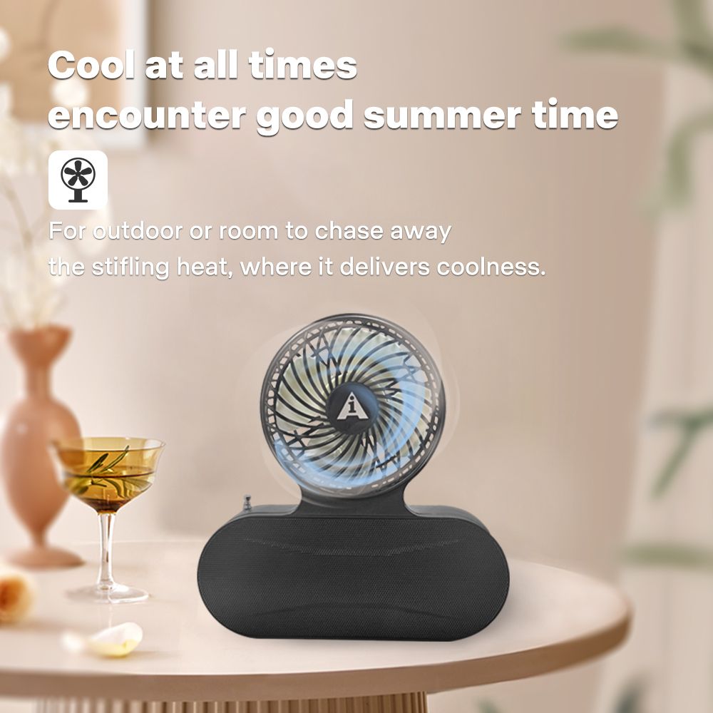 - The flashlight function provides a strong light mode for night lighting needs. The fan function can provide users with cool wind, especially suitable for outdoor activities or hot summer days. The radio feature allows you to listen to radio programs in the AM/FM band, keeping users up to date with the latest news and music. The Bluetooth speaker feature allows users to connect to a mobile phone or other device via Bluetooth, play music or receive calls wirelessly.
