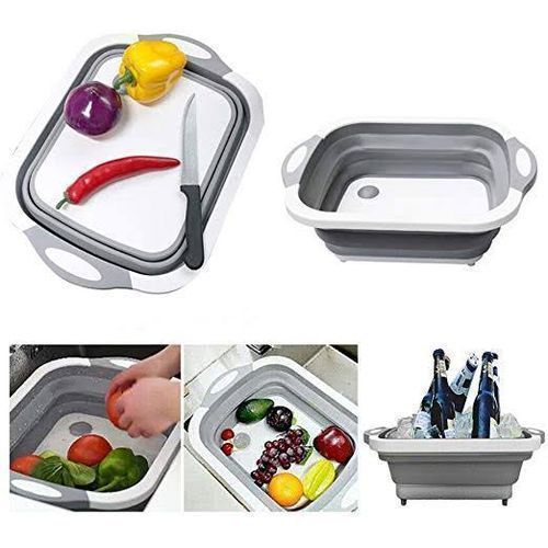 Collapsible Cutting Board with Dish Tub - Basket with Draining Plug - Collapsible Colander and Dish Sink Tub Storage Basket - 3 in 1 Multifunction Kitchen Kit