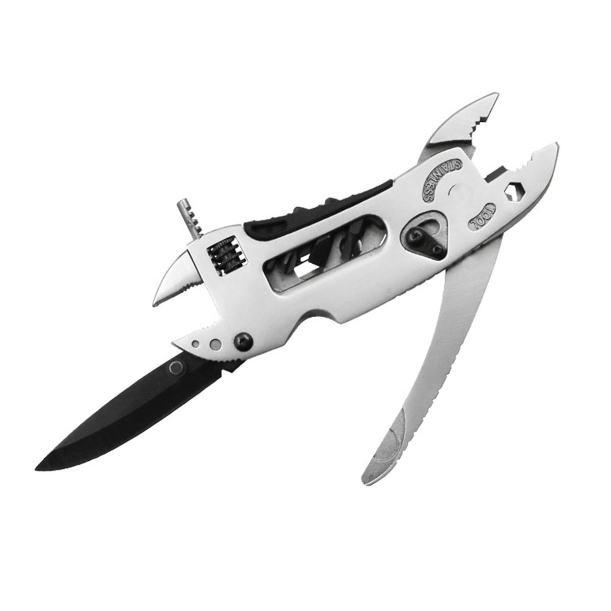 All in One Tools: different tools including wrench, 3x screwdriver bit, clamping pliers, wire , conventional pliers, 2x bit socket holes, etc.The multi tools survival tools set fits camping, hiking, exploring travel, DIY jobs, outdoor activities, etc. Lightweight size fits perfectly in pocket and you'll want to take it everywhere with you.This multi-use tool is a perfect gift Men/Dad/Husband/Boyfriend/Him If he likes camping, hiking, picnic, , climbing, etc. Of course it is also practical for daily home repairs.It is a useful, high-quality and durable multi-tool gadget.