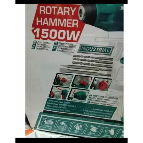 Voltage : 220-240V~50/60HzInput power : 1500WNo-load speed : 850rpmImpact rate : 4400bpmImpact energy : 5.5JMax.drilling capacity Concrete : 32mmSteel : 13mmWood : 40mmSDS plus chuck systemWith 3 drills and 2 chisels