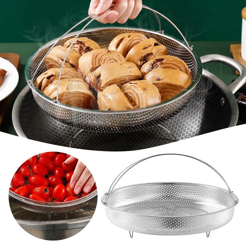 *Multifunctional: This multifunctional steaming rack drain basket can be used to steaming food, wash rices, wash vegetables and fruits, and can also be used as a fruit container.