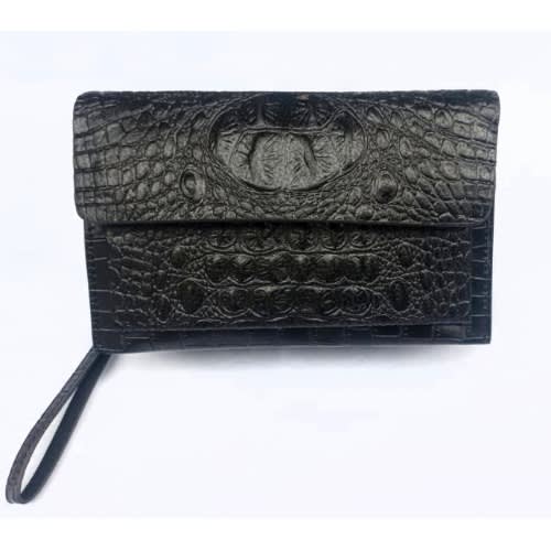 Cow-hide Olive Croc Print Wallet Wallet is made from 100% leather. The quality is exceptional as certainly would stand the test of time.