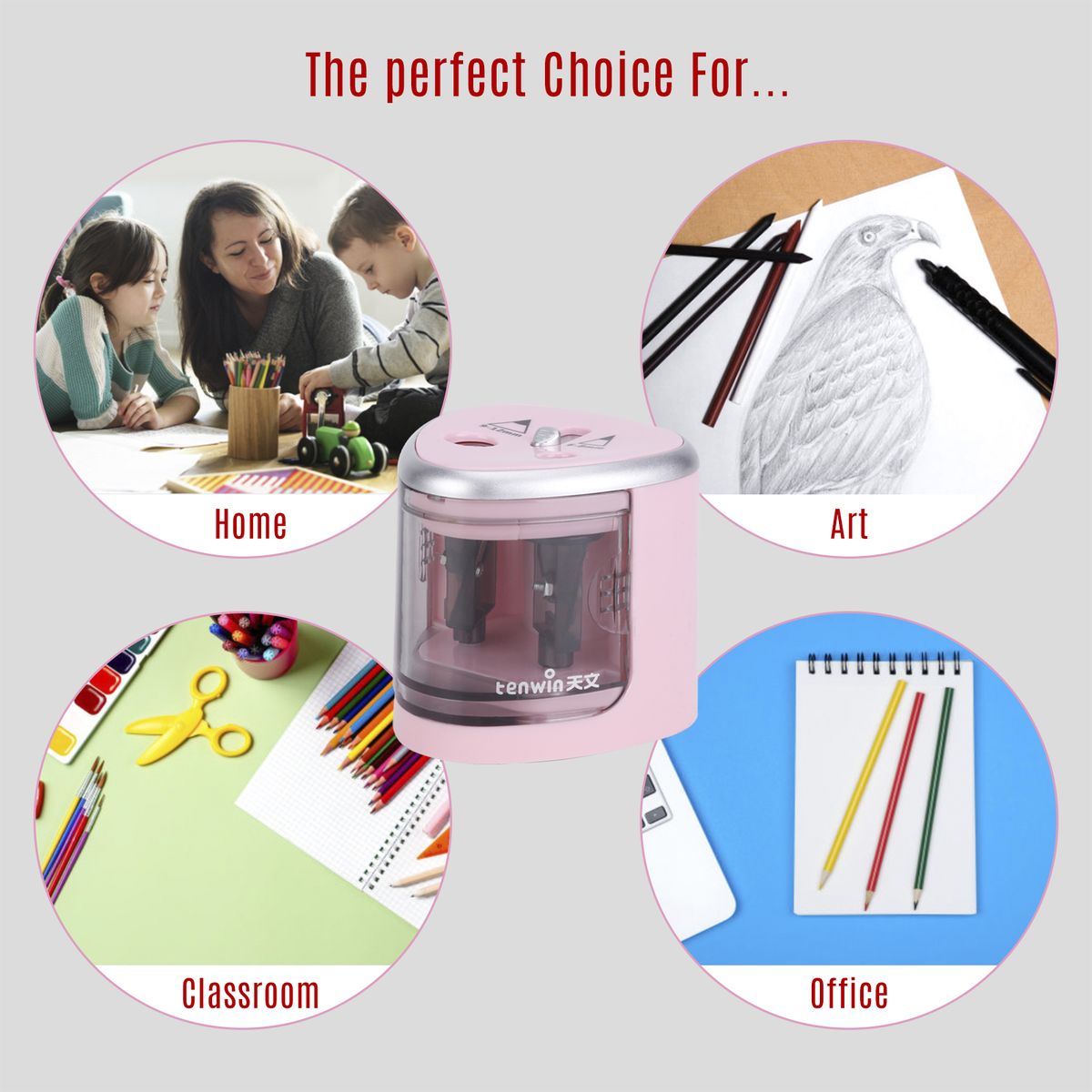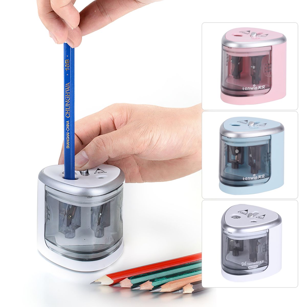 Features:Automatic electric pencil sharpener with 2-holes for pencil, dimension from 6 to 12mm.