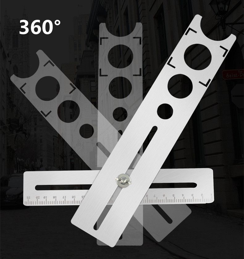 1X Multi-Functional Ceramic Tile Opening Hole Locator Ruler Adjustable Punching Hydroelectric Mason Measuring Hand Tool