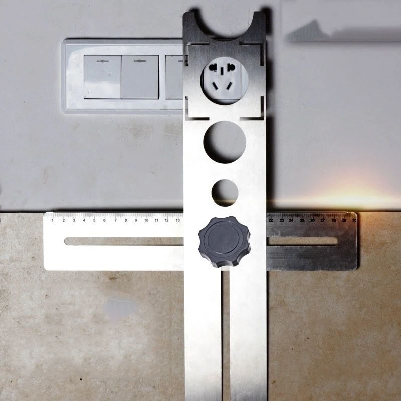 Multi-Functional Ceramic Tile Opening Hole Locator Ruler Adjustable Punching Hydroelectric Mason Measuring Hand Tool