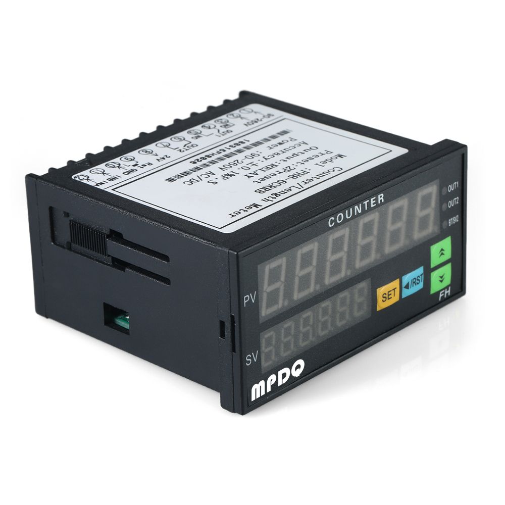 This is a dual display digital counter that can be used as a industrial counter to count the quantity of objects in a single batch and the production line, and also can be used as length counter. It is widely applied in machine, light industry, electronic, food, package, leather, cloth weaving industry for counting, length, batch counting.