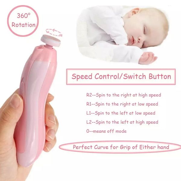 4 working modes: this baby nail trimmer kit is powered by 2 AA batteries (no batteries included), you can choose the spinning speed and direction when trimming the different hands' fingernails. Baby Nail Clippers have 4 Gear adjustments to meet the needs of various stages of the nail, dual speed, reverse, and clockwise.