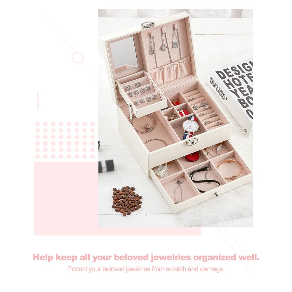 Two-layer design and large capacity, perfect for storing necklaces, rings, earring, ear studs, bracelets, watches and other jewelries.
