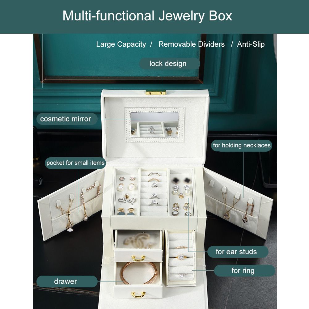 With removable dividers to meet different using needs, and it provides enough space to contain your different jewelries accessories.