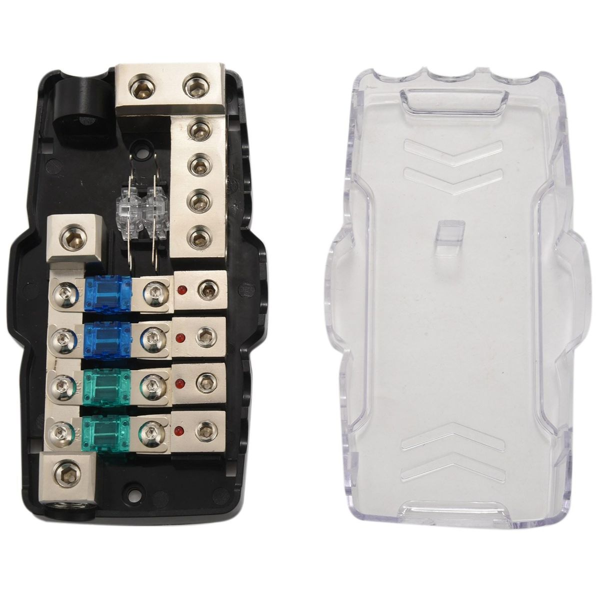 4 Way Fuse Block: 2*30A ,2*60A ,2*80A fuses,Input:2 x 0/4GA,Output:4 x 4/8GA