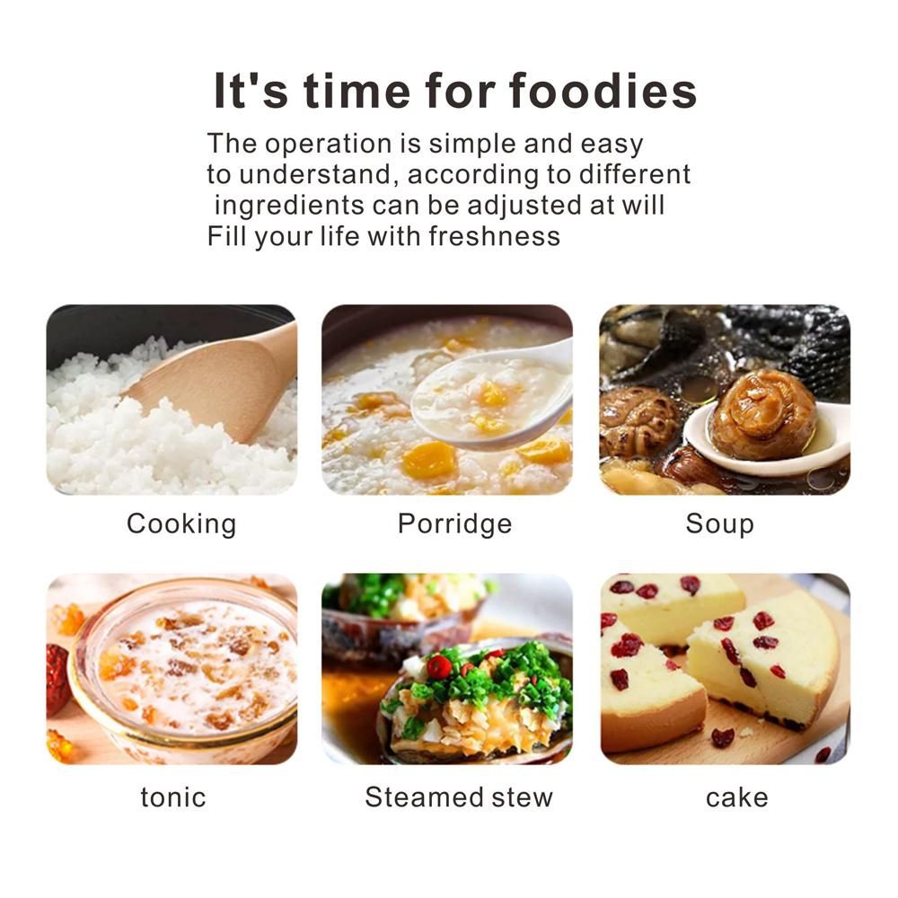 More uses: In addition to cooking, you can also bake cakes, cook Congee, cook soup and steam meat. There is a large space inside that can accommodate a whole chicken.