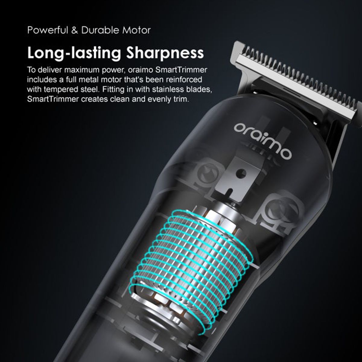 To deliver maximum power, oraimo SmartTrimmer includes a full metal motor that's been reinforced with tempered steel. Fitting in with stainless blades, SmartTrimmer creates clean and smooth trim.