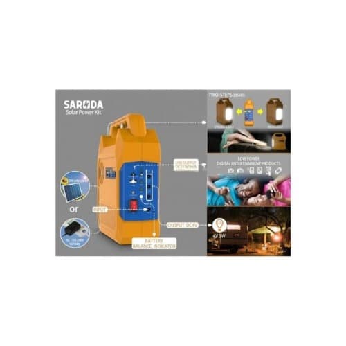 Saroda SP10-08 Solar Power Kits is a multi-functional system with FM radio/SD card/USB/blue tooth MP3 player. Used as home lighting, kitchen lighting and garden lighting. This product can be used to supply power to LED bulbs, digital device and receiving FM radio or listening to music via SD card, USB, bluetooth or MP3 player. You can also use either the power adapter to recharge or the solar panel. Ideal for anyone desiring to go "green" or conserve energy. It is featured with compact configuration, small in size, light in weight and easy to carry.