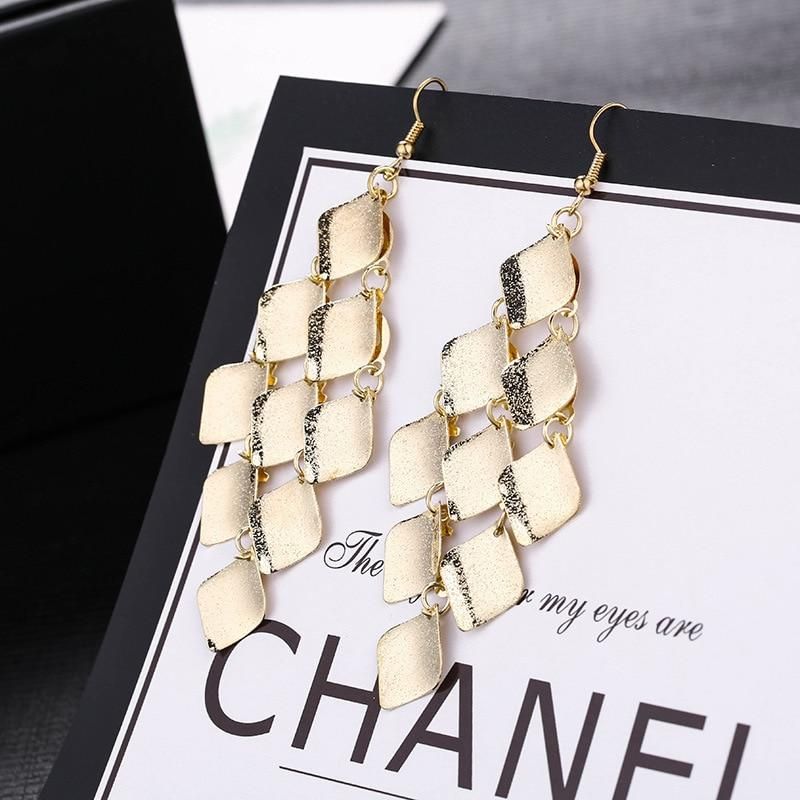 Buy Multi-layer Metal Leaves Geometric Earrings Swing Drop Dangle Earrings For Women Gold Silver Color Fashion Female Party Jewelry in Nigeria