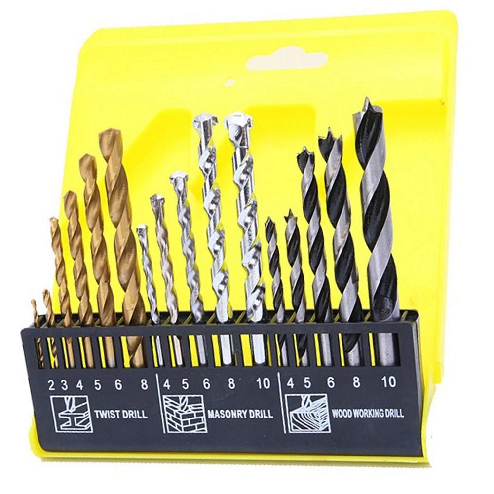 [16PCS THREE TYPES OF METRIC DRILL SIZE]HSS TWIST DRILL size: 2cm, 3cm, 4cm, 5cm, 6cm, 8cm; MASONRY DRILL size: 4cm, 5cm, 6cm, 8cm, 10cm; WOOD WORKING DRILL size: 4cm, 5cm, 6cm, 8cm ,10cm.