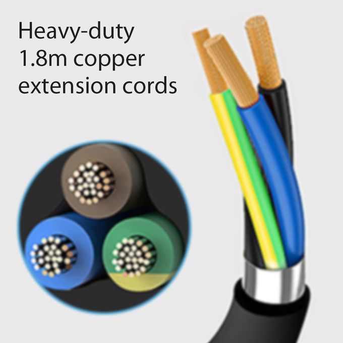 *12-outlet extension lead is also a surge protector with a 180cm power cord, provides a total power output of 2500W.