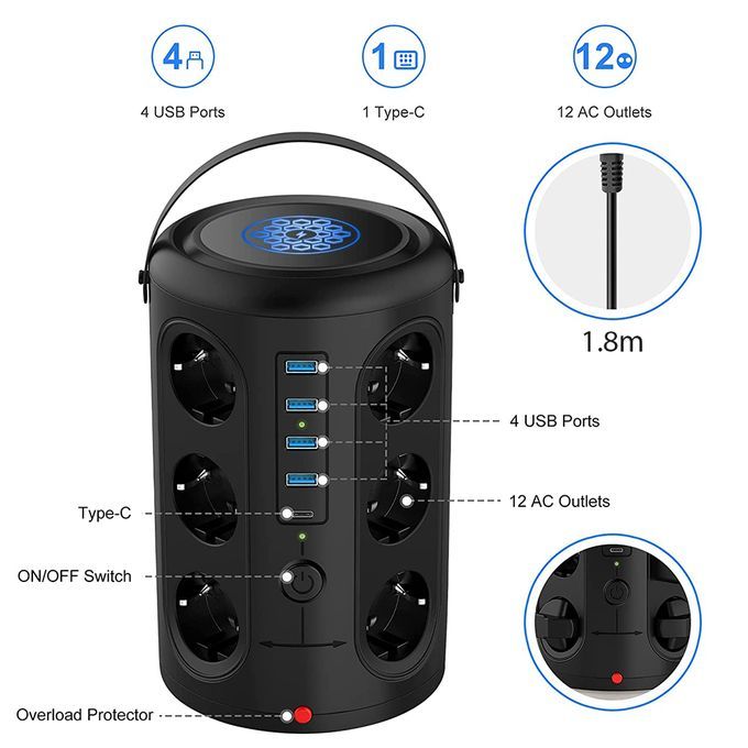*Ideal for home, office, or any room with multiple electronic devices, the tower Power strip is designed to keep cables neat and tangle-free.