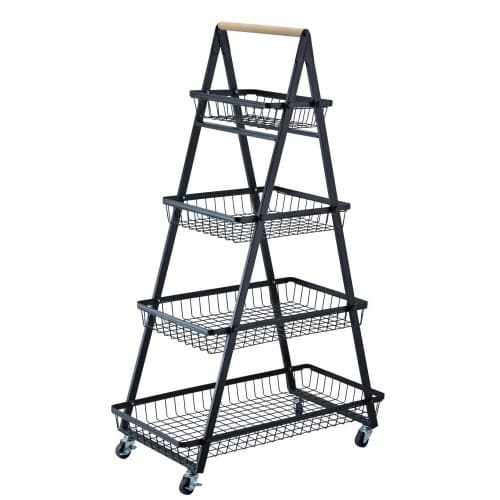 Buy Multi purpose foldable black 4-tier steel utility rolling storage trolley in Nigeria