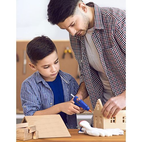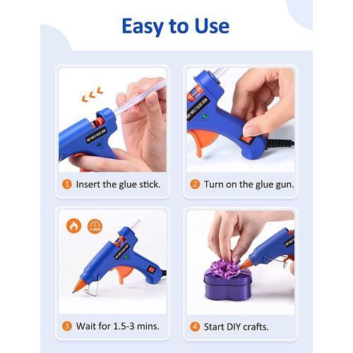 Strong Adhesiveness: Comes with 10 pcs high purity and environmental-friendly EVA glue sticks, our mini hot glue gun is suitable to stick material such as papers, fabric, glass, metal, wood, plastic, stones, ribbon, ceramic, wicker, etc. Perfect for you to make DIY crafts, repair toys, bond circuit boards, and pack gifts.Fast Heating & Easy Operation: This hot melt glue gun quickly heats in 1.5 to 3 minutes. The smart temperature controller makes the glue gun maintain a constant temperature. Just insert a glue stick in and wait for 1.5 to 3 minutes, and then the glue easily comes out by pushing the trigger propulsion device.Safe and Reliable to Use: The glue gun with user-friendly designs 100% guards your safety: an anti-scald rubber on the nozzle prevents you from being burnt; a flexible kickstand keeps the glue gun stable and upright; a ON/OFF switch with indicator light makes it more convenient to use, no need to unplug the glue gun frequently.Ergonomic Handle & Handy Size: An ergonomic handle allows you to comfortably and effortlessly hold the hot glue gun, as well as relieves your hand's fatigue. The handy and compact size (5.1in/13cm x 4.3in/11cm) makes this glue gun also suitable for kids to use. Enjoy a happy crafting time with your little ones.Ergonomic Handle & Handy Size
